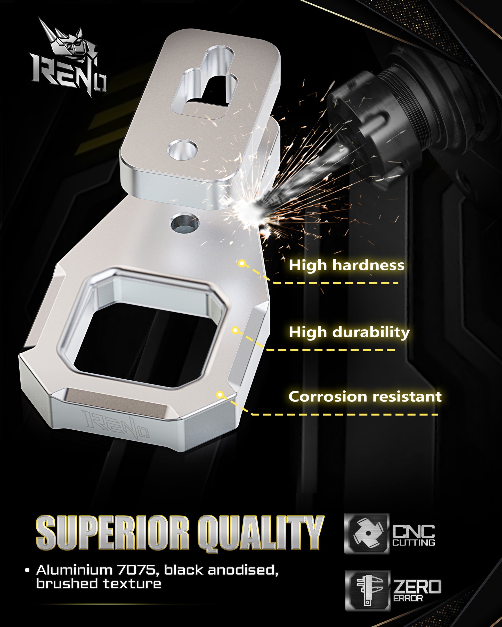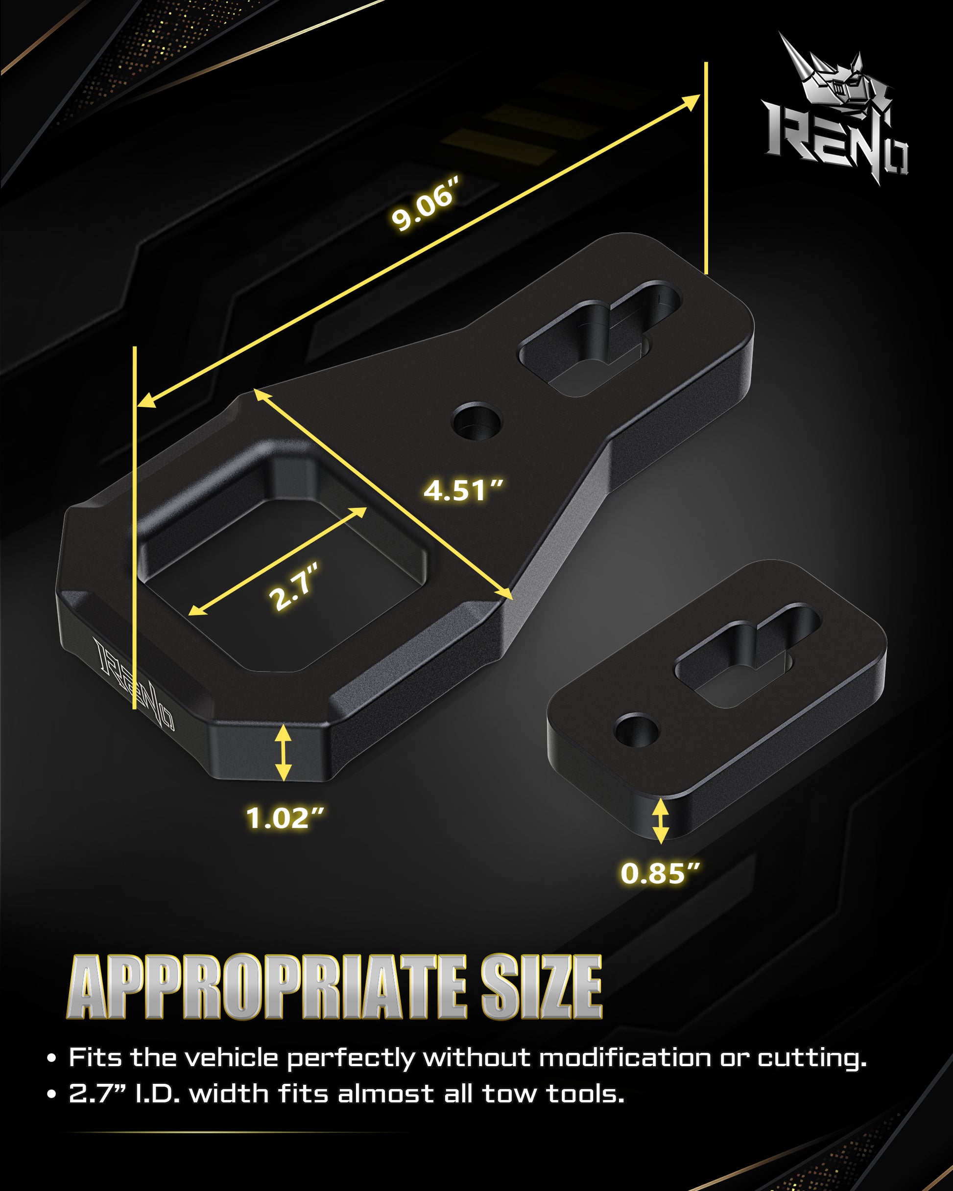 - Designed to fit the vehicle perfectly, RENO tow hooks can be easily installed without the need for modification or cutting. Package includes install accessories, please make sure to check the instructions before installation as some vehicles may not require Nut Inserts.