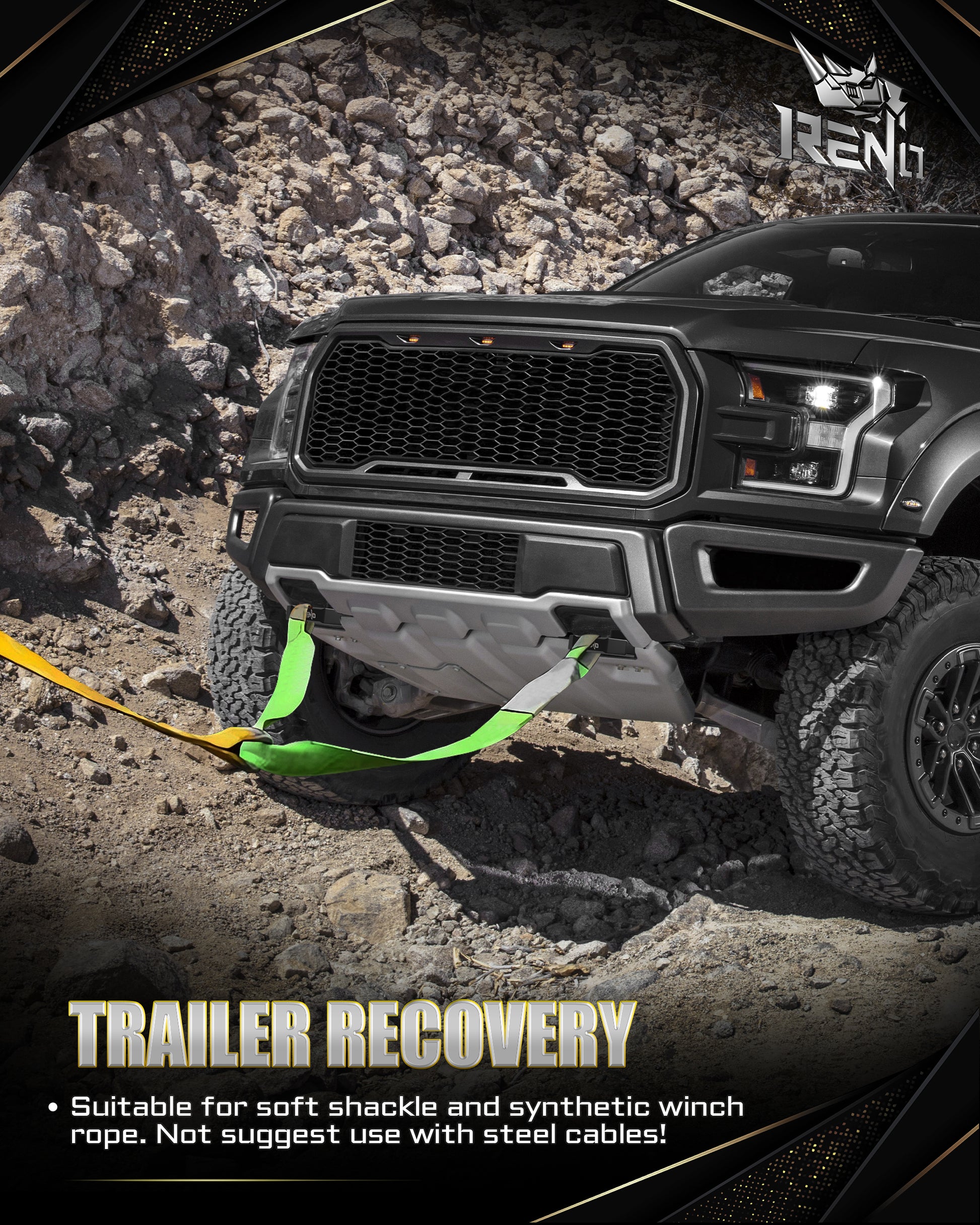 - 2.7" integrated large D-ring, no additional D-ring required, making it convenient for a variety of tow recovery jobs. Please note that these tow hooks are suitable for use with Soft Shackles, synthetic winch ropes. We do not recommend using them with steel cables.