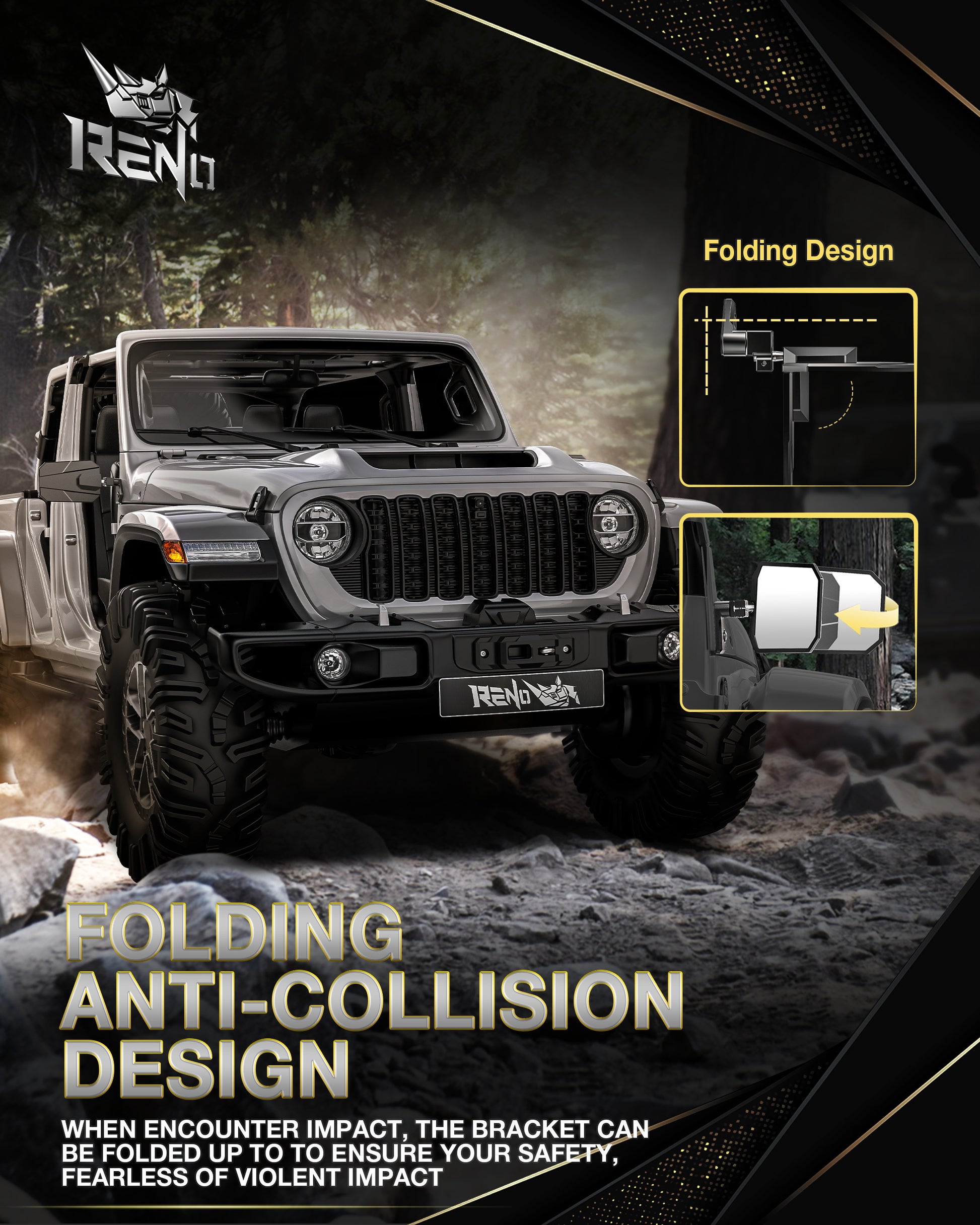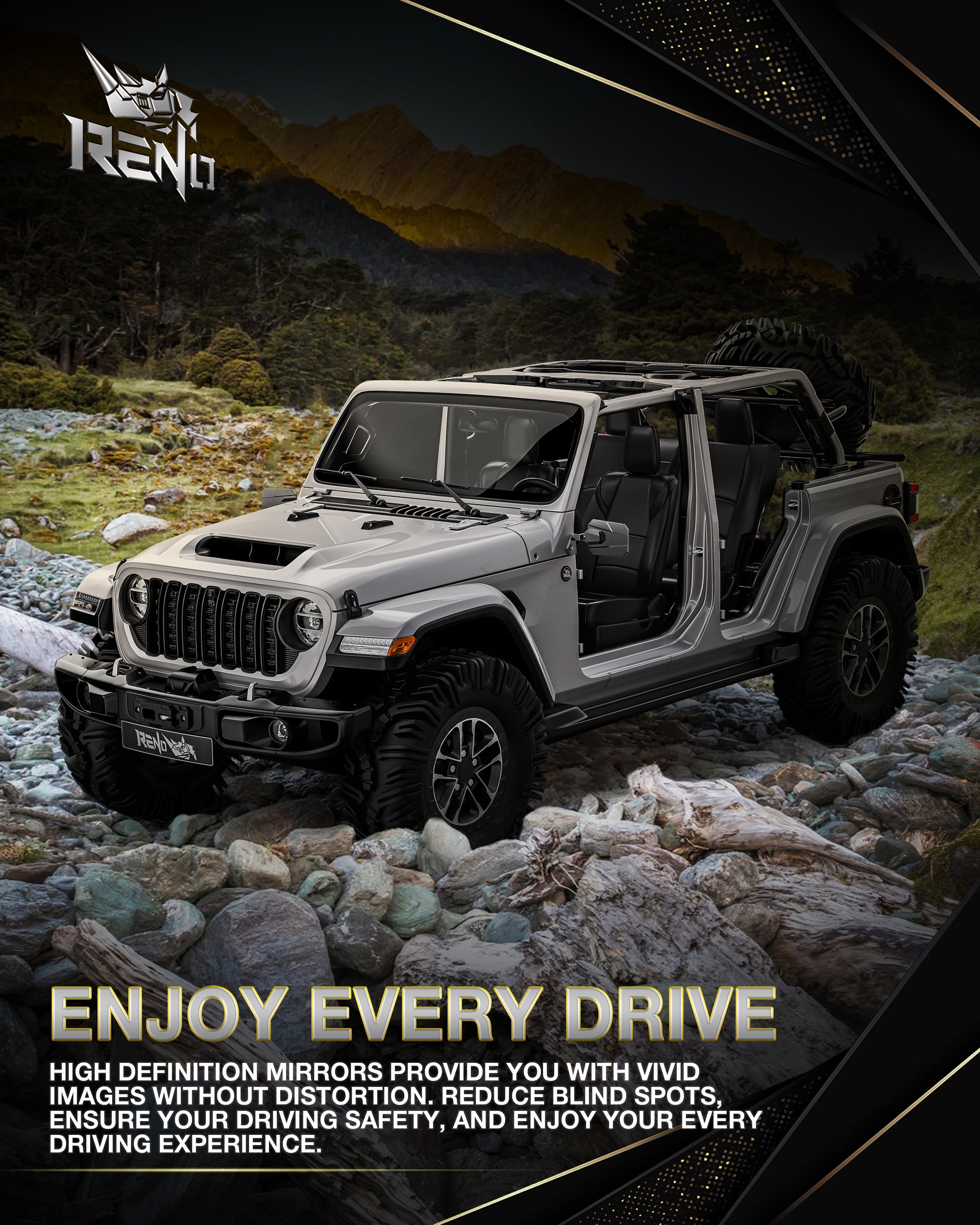 RENO Jeep Wrangler Mirrors Doors Off, Aluminum CNC Side Mirrors