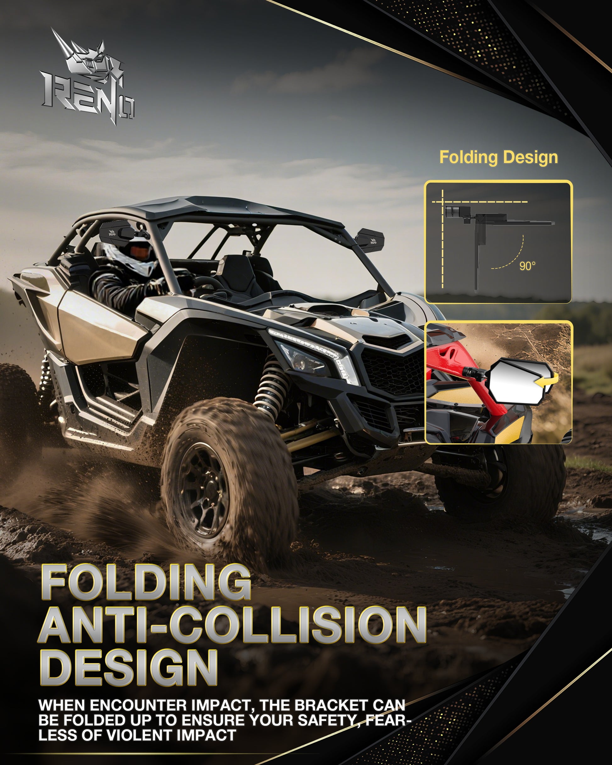 RENO UTV Side Mirrors, Compatible with 2017-2025 Maverick X3 Max Xds Xrs Xmr Xrc Turbo RR, OEM Replace #715002898 (Black, Pack of 2)